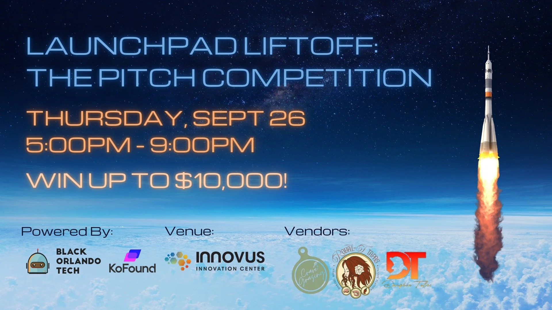 Black Orlando Tech has partnered with KoFound, the Orange County Government and Innovus Innovation Center to host a pitch competition to help underrepresented tech entrepreneurs blast off into the tech industry. The pitch competition fosters entrepreneurship, innovation, and community within the tech industry. Participants will present their innovative tech startup ideas to industry leaders during the competition. The pitch competition grand prize winner will receive up to $10,000, while the second and third-place winners also receive funding to back their project.